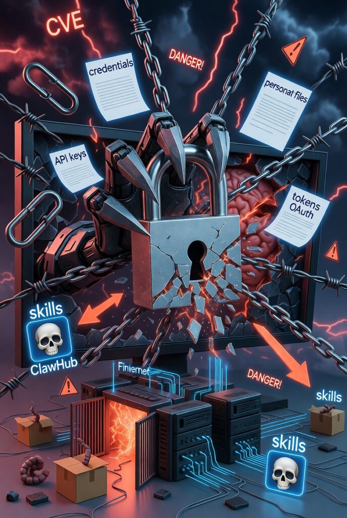 Antes de instalar nada, conviene entender qué estás metiendo en casa. OpenClaw puede ejecutar comandos de shell, leer y escribir ficheros, y controlar el navegador de tu máquina. La propia documentación del proyecto admite que no existe una configuración perfectamente segura. En enero de 2026 se detectó el ataque de cadena de suministro «ClawHavoc»: aproximadamente el 12% de las skills del registro oficial estaban comprometidas. Hubo un CVE crítico (CVE-2026-25253) que permitía ejecución remota de código con un solo clic.