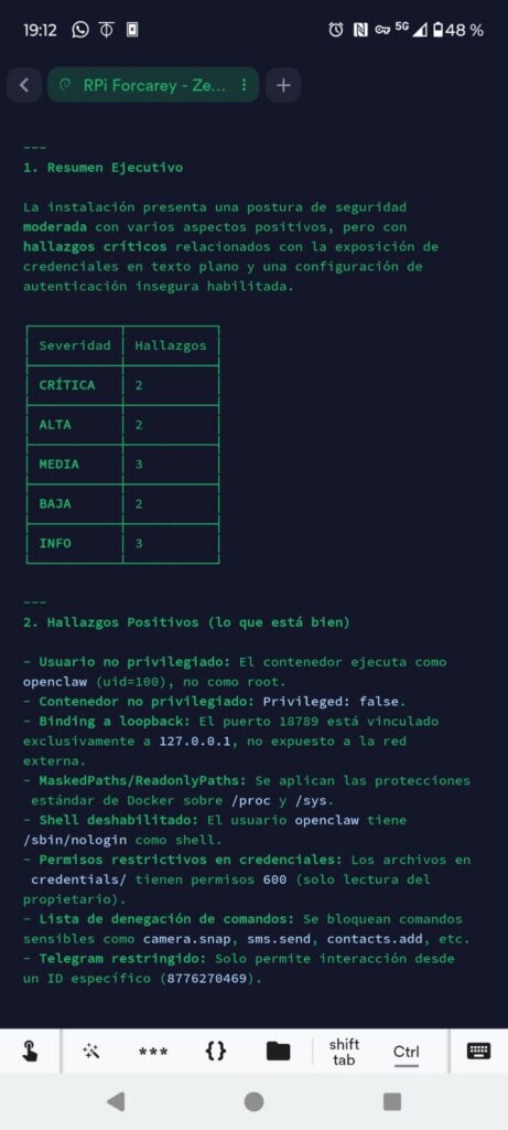 Y es que, aunque había explicitado desde el inicio que quería realizar un proceso de despliegue seguro y conforme a buenas prácticas de ciberseguridad, quería validar cómo de bien se había hecho este proceso. Así que me hice con un repositorio específico (https://github.com/mukul975/Anthropic-Cybersecurity-Skills), e hice la prueba. Y el resultado fue que aprobaba raspado en la seguridad de mi despliegue: